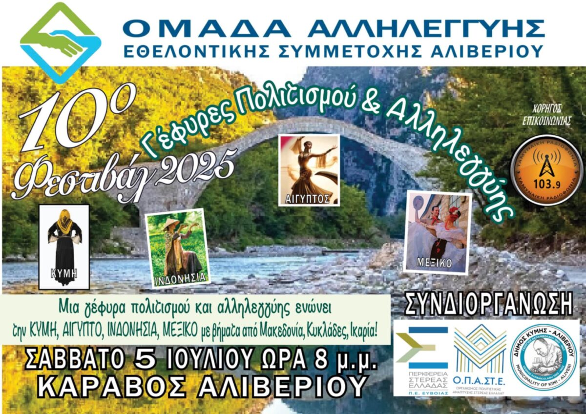 Το Σάββατο 5 Ιουλίου, στις 8μ.μ. στον Κάραβο Αλιβερίου, διοργανώνεται το 10ο Φεστιβάλ Αλληλεγγύης, μια βραδιά γεμάτη ρυθμό, παράδοση και πολιτισμό!
