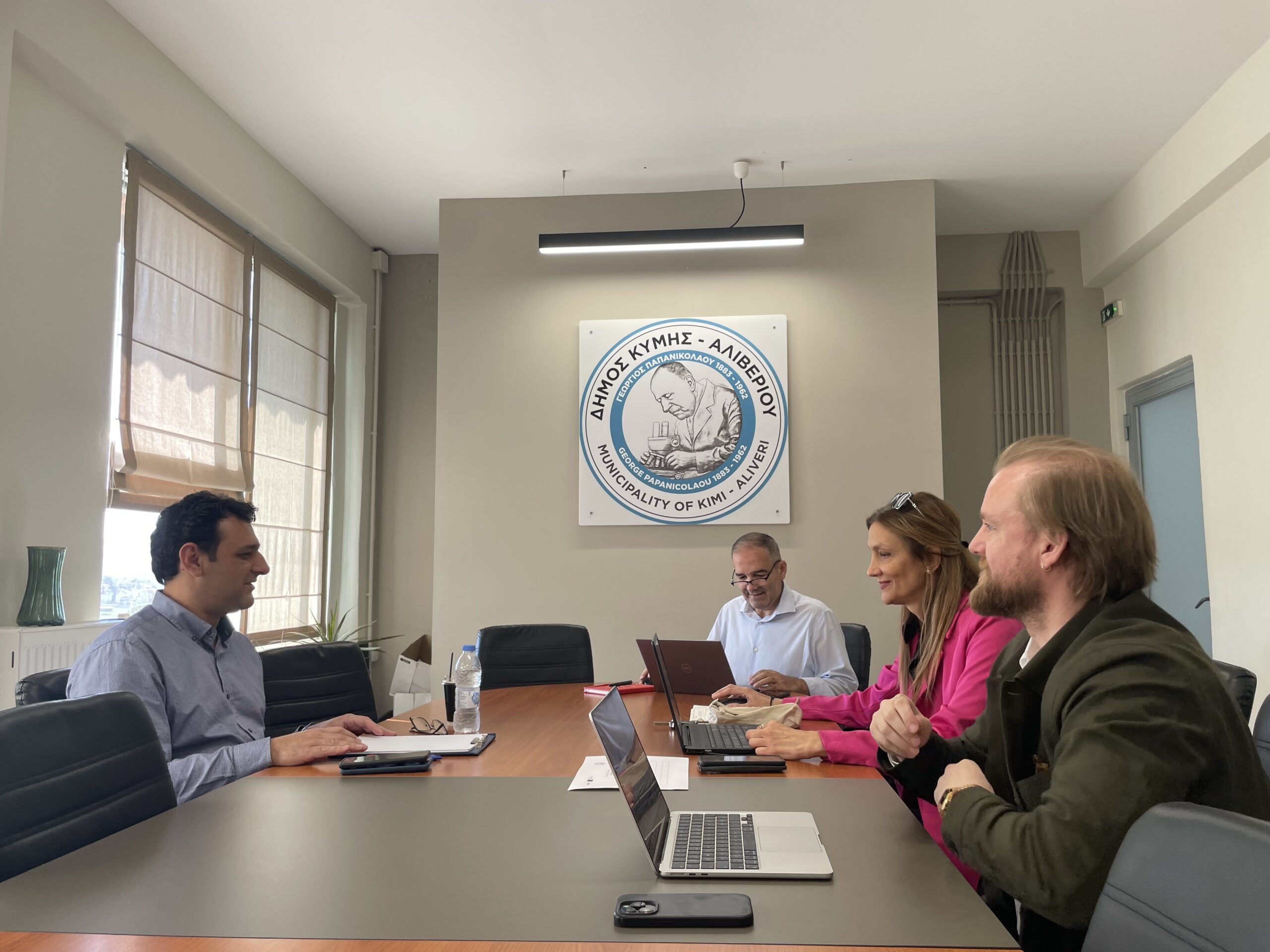 Κατά τη διάρκεια των δύο ημερών πραγματοποιήθηκαν συναντήσεις εργασίας με στελέχη του Δήμου και τοπικούς φορείς. Συζητήθηκε η πορεία του έργου, οι προκλήσεις που υπάρχουν, αλλά και τα επόμενα βήματα, με στόχο την καλύτερη προσαρμογή της πρακτικής στις ανάγκες της περιοχής. Στις συναντήσεις συμμετείχαν ο δήμαρχος Κύμης Αλιβερίου, Ν. Μπαράκος, οι αντιδήμαρχοι Γ. Στρουμπούλης, Α. Πάφρας, Π. Δήμου, ο Γ.Γ. του Δήμου, Γ. Μαθιουδάκης, οι δημοτικοί σύμβουλοι, Π. Αγγελόπουλος, Ν. Κόκκος, οι πρόεδροι των κοινοτήτων Αλιβερίου, Π. Αλέξης, και Αγίου Βλάση, Δ. Μύρκος, ο πρόεδρος των ΚΤΕΛ Εύβοιας, Ν. Σμπιλίρης καθώς και ο ιδιοκτήτης Ταξί, Σπ. Δαρδούμας.