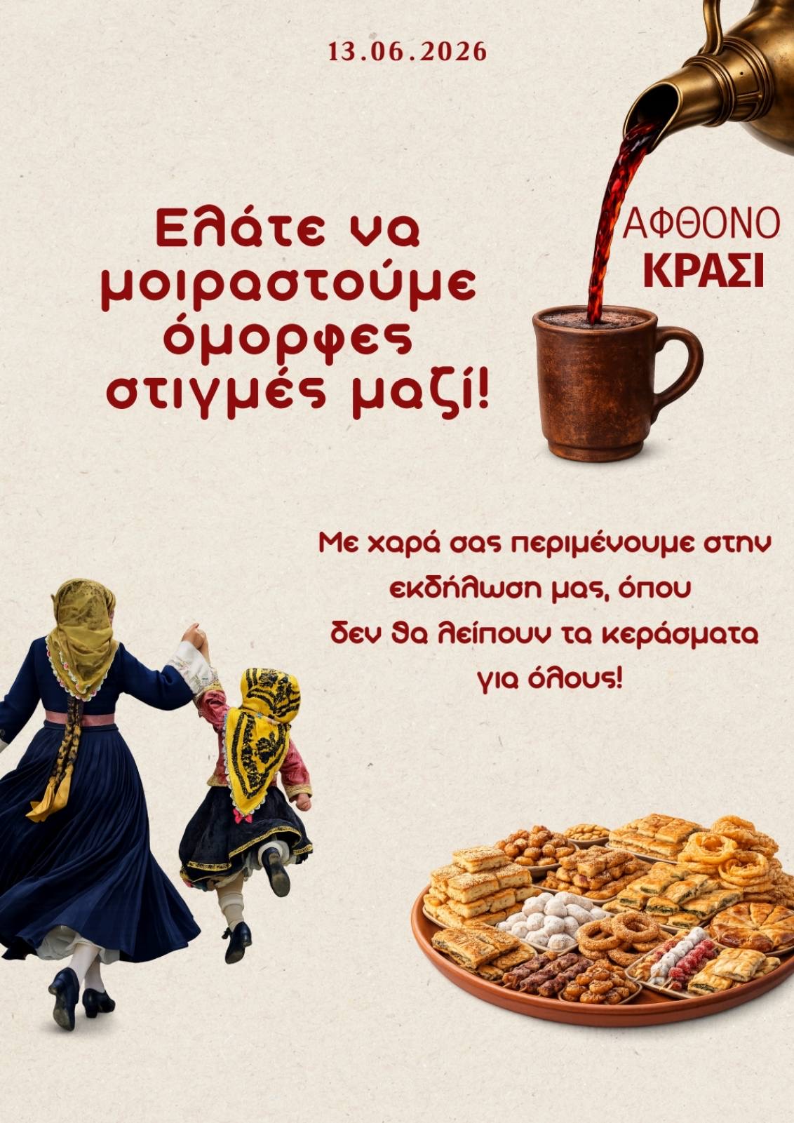 Σας περιμένουμε όλους για να μοιραστούμε όμορφες στιγμές, με άφθονο κέφι και παράδοση!
