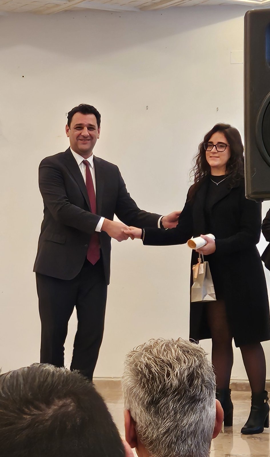 Μετά τη Θεία Λειτουργία ακολούθησε εορταστική εκδήλωση στην αίθουσα του Εκκλησιαστικού Γηροκομείου Κύμης, όπου πραγματοποιήθηκαν βραβεύσεις αριστούχων μαθητών Γυμνασίου και Λυκείου, σπουδαστών της ΑΕΝ Κύμης καθώς και επιτυχόντων σε Ανώτατα Εκπαιδευτικά Ιδρύματα.